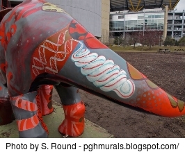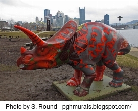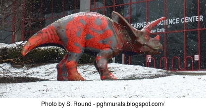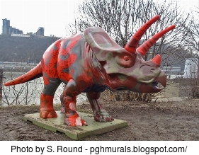 The DNAsaurus was created to commemorate His Royal Highness Prince Andrew's 2003 visit to Pittsburgh. The Duke of York was in town to speak at a business conference and was going to visit the North American Headquarters of GlaxoSmithKline (GSK), a British owned pharmaceutical company. From a report by PRNewswire dated Oct 24, 2003, the local president of GSK said: