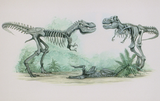 2 Dinosaur Hall, Tyrannosaurus rex skull and Corythosaurus